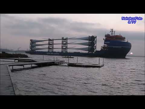 Mandag formiddag anløb Vestas´ store vingeskib Bravewind, Nakskov Havn, for at hente lidt vindmøllevinger.
