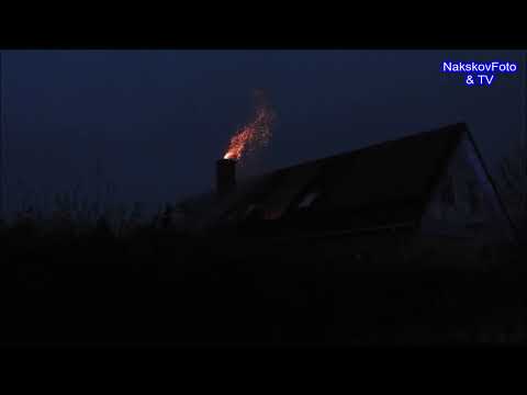 Da brandmandskabet ankommer kunne man konstaterer at der var tale om en kraftig skorstensbrand, hvor gnisterne spruttede ud til alle sider.